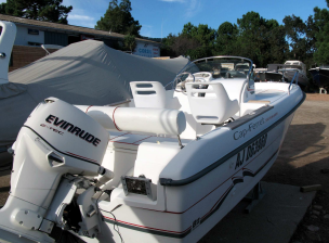 Moteur Evinrude e-tec 90 CV 590 heures, régulièrement entretenu (factures disponibles) Stocké en port à sec ou sur remorque GPS / sondeur Lowrance Emplacement pour cannes à pêche, taux de soleil, échelle de bain, grand rangement sous la console Espace bain de soleil transformable en espace pique nique avec table Fauteuils de cockpit retirés pour gain de place, remontables Armement 6 personnes Remorque CBS T9M de 2014 à timon basculant . PTAC 1 250 kg. Rincée après chaque sortie Bateau familial idéal jeunes enfants Visible aux Salins d'Hyères