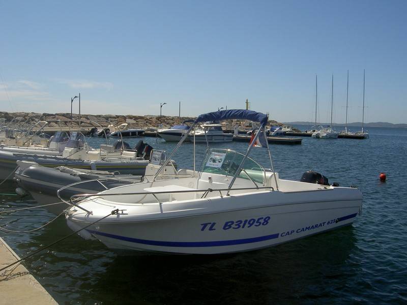 Pour trouver un cap camarat en location il suffit de contacter la société bat sud au port de hyeres il propose un cap camarat 6.25 m avec un 140 cv suzuki , un taud de soleil ,une douchette ,un bain de soleil avant pour 240 € par jour en haute saison.