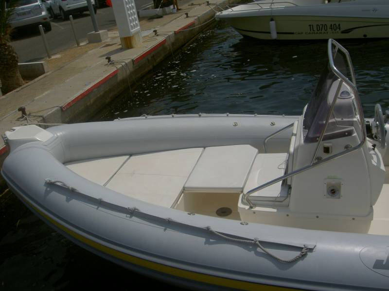 Pour louer ce semi rigide la caution est de 2500 €, Le tarif à la journée en basse saison est de 320 €, et du 13 juillet au 31 aout 370 €.