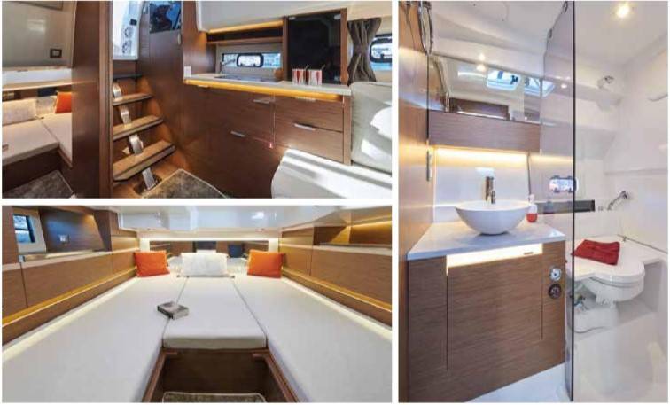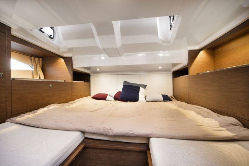 Ce Day boat a tout pour vous donner le goût de la croisière et des nuits en mer. Une fois au mouillage, il y en a pour tous les goûts : bain de soleil et système de chaise longue sur le pont avant pour la détente ; franc-bord escamotable pour créer une plate-forme d’accès à la baignade avec échelle de bain ; plusieurs systèmes de tables amovibles dans le cockpit à choisir en fonction de vos usages.