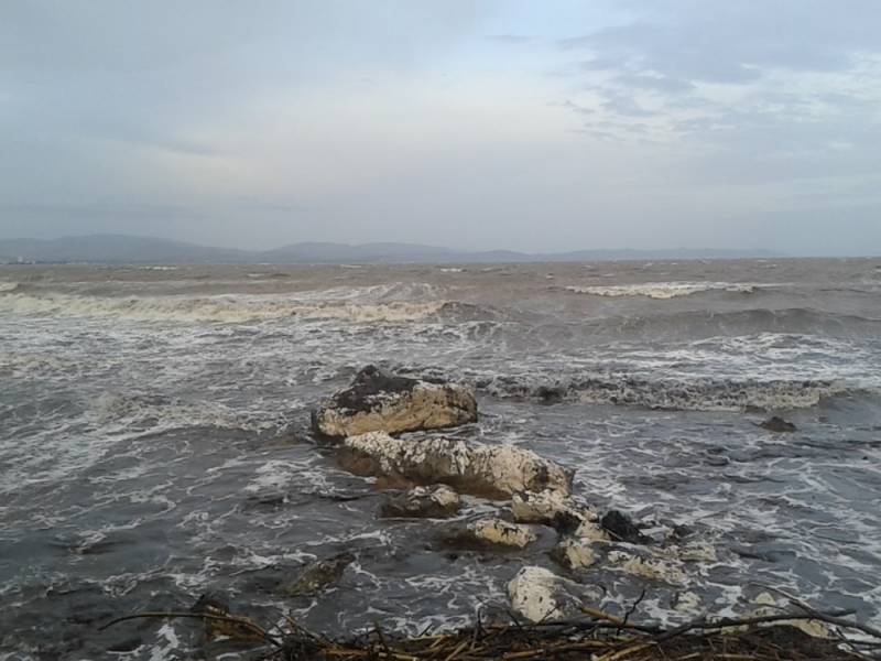 Promenade sur les plages du port de Hyeres pendant le dernier coup de vent d"est.