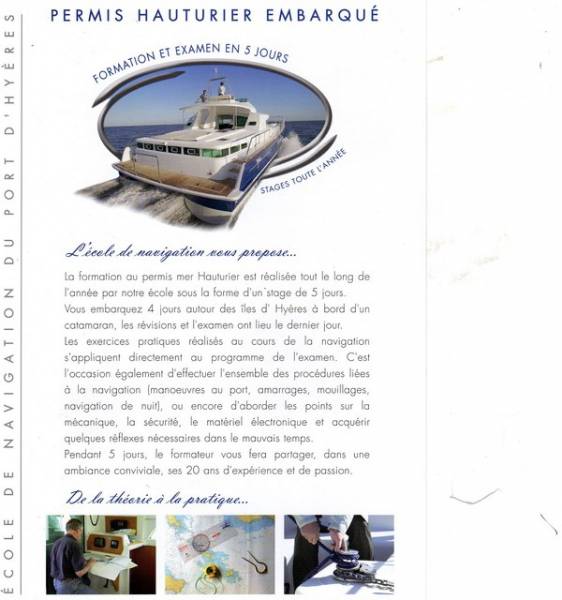 L'école de navigation du port de Hyeres ,Permis Hauturier Embarqué vous propose une formation originale.